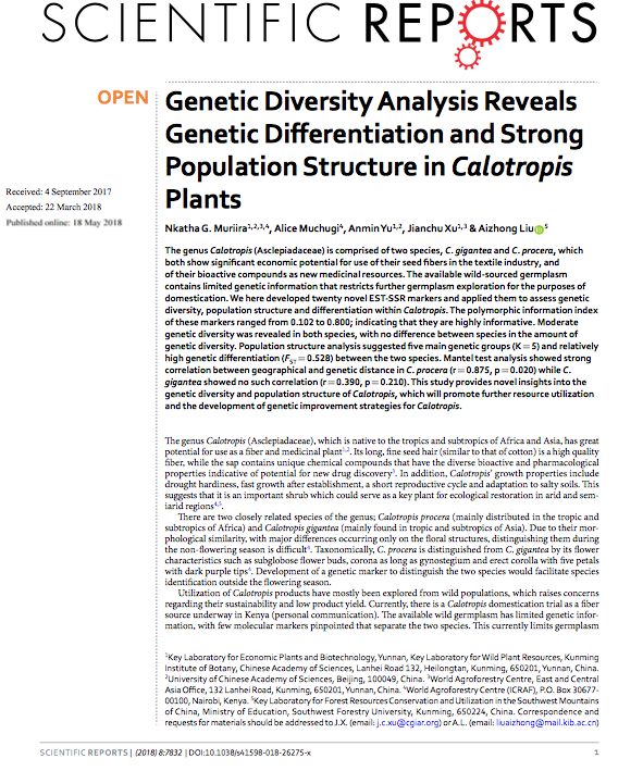 - Genetic Diversity Analysis Reveals Genetic Differentiation and Strong Population Structure in Calotropis Plants